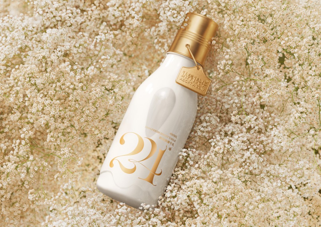 This is a concept packaging design for ”fresh milk”, with the brand name ”adopting a cow”. In previous product designs, brands often used to depict the shape of cows as youthful and agile, to express the concept that ”cows are raised very well”. In this design, we chose to use a ’golden milk bucket’ to interpret the concept of ’well nourished’.